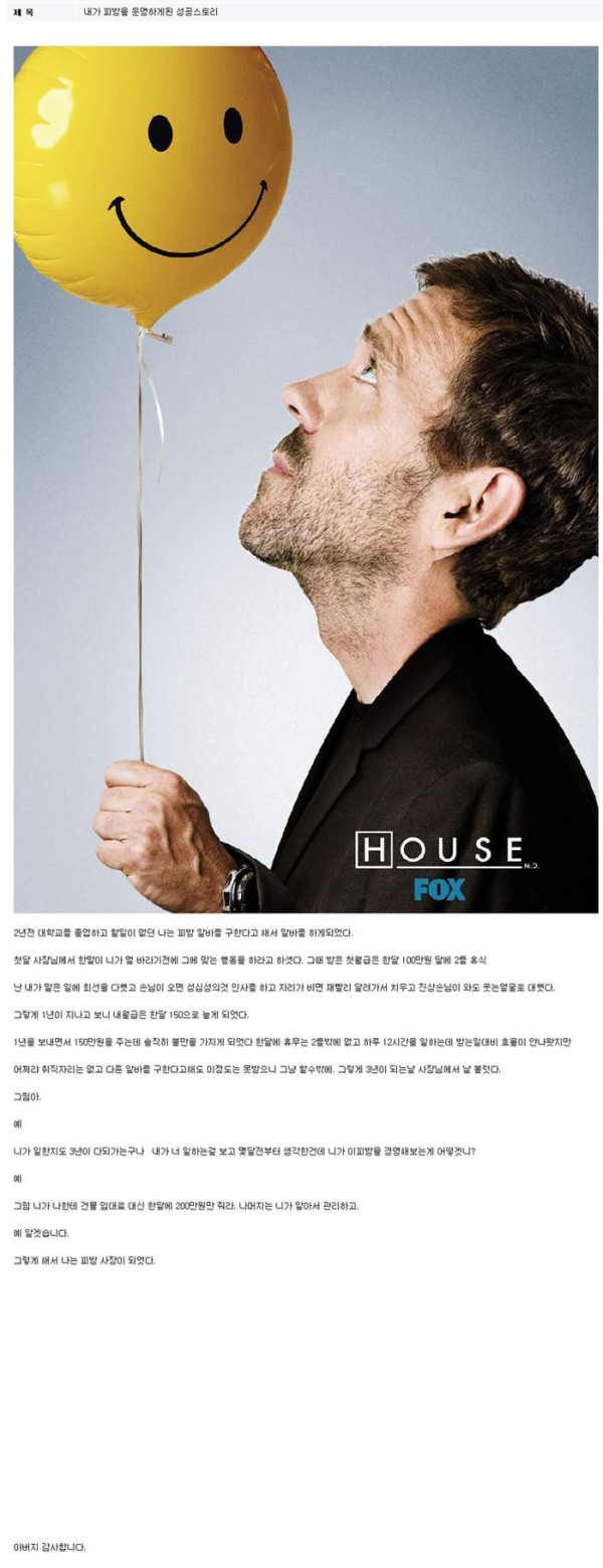 3년만에 PC방 알바에서 사장까지 성공 스토리 페이지 정보 작성자 마술피리 댓글 0건 조회 14,452회 작성일 11-07-12 20:03 목록 본문 페이스북 공유 트위터 공유 이런 개객끼; 댓글 0 댓글목록 등록된 댓글이 없습니다.