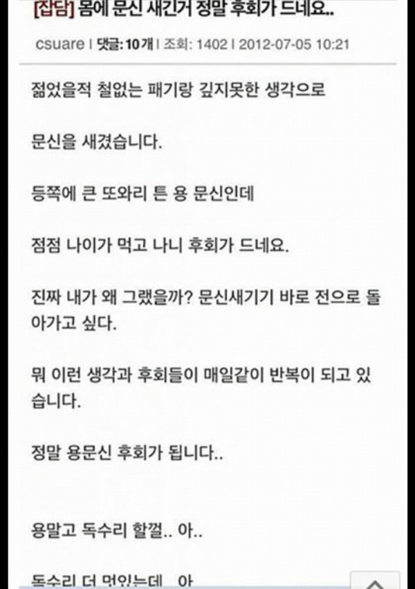 문신 새긴거 정말 후회가 되네요 > 재미게시판