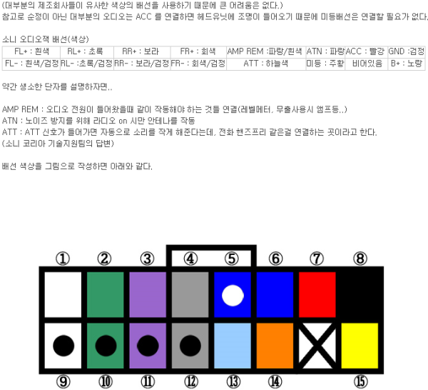 소니 카오디오 배선(SONY 데크 헤드유닛 잭배선)