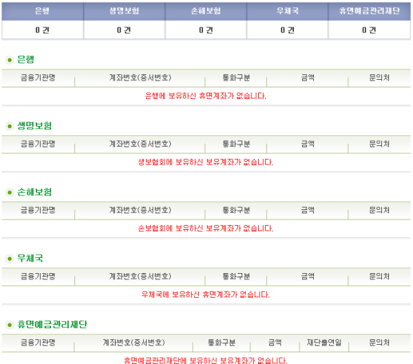 휴면계좌 통합조회 시스템(은행/보험/우체국/예금) 은행연합회
